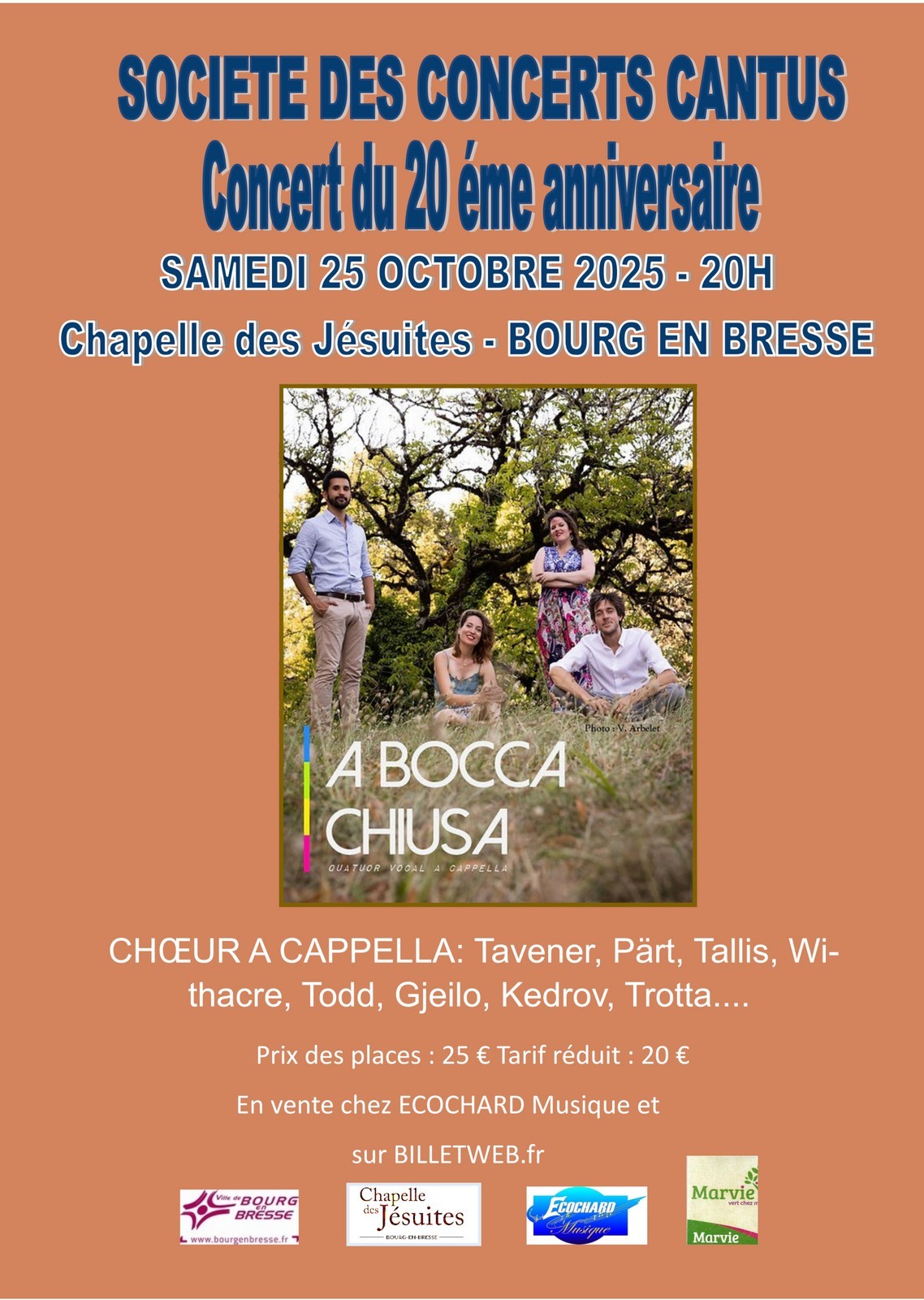 Samedi 25 octobre 2025 à 20 H avec le quatuor vocal a cappella "A BOCCA CHIUSA"