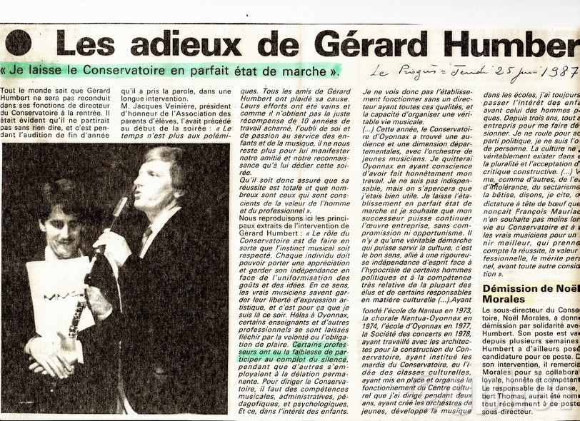 25 juin 1987:discours de départ sur la scène du centre culturel ARAGON pour l'audition de fin d'année.