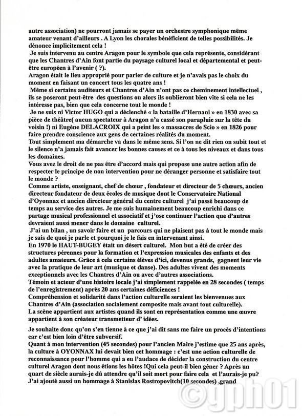 27 Avril 2007:concert Chantres d'Ain:intervention publique sur la scène du centre ARAGON à OYONNAX :document page 2