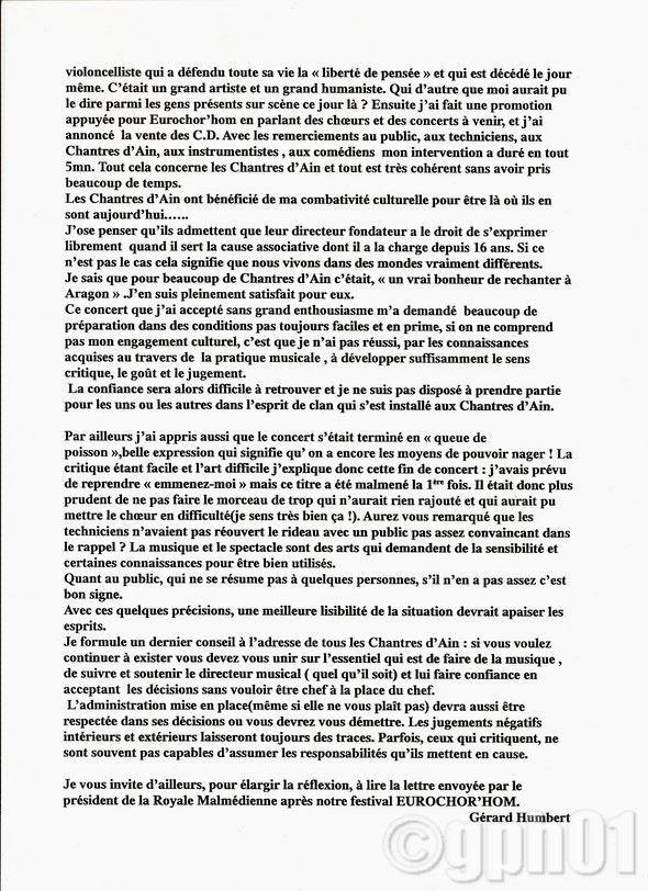 27 Avril 2007:Concert Chantres d'Ain =>intervention publique sur la scène du centre ARAGON à OYONNAX. document page 3.