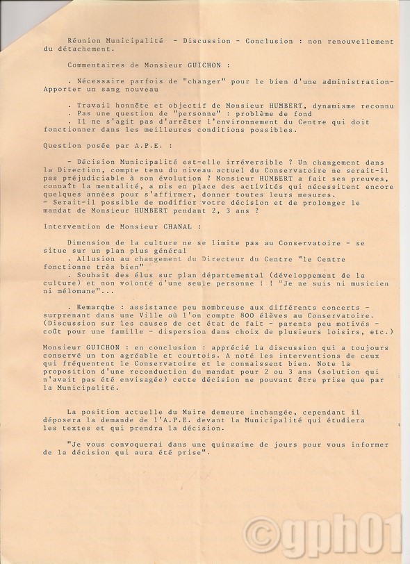 page 2 de l'entrevue de l'APE du Conservatoire avec le député-maire (vous pouvez cliquer sur la page pour prendre connaissance des commentaires).