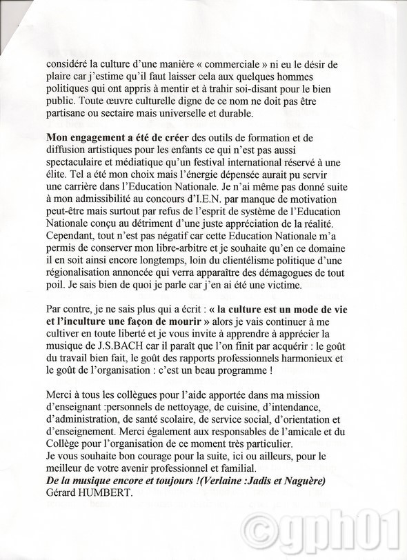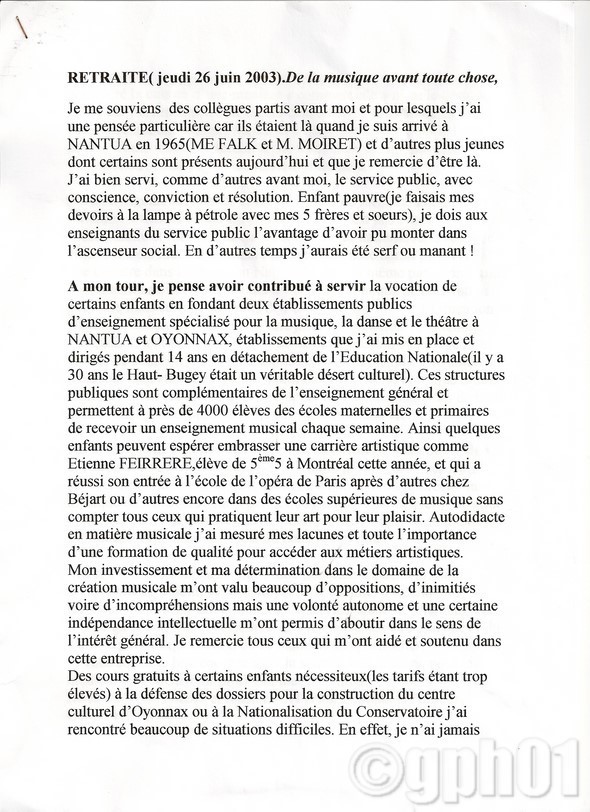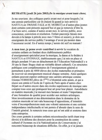 Ce concours est beaucoup trop théorique pour moi et je préfère une pratique musicale sensible et si possible partagée à l'intellectualisation des oeuvres fussent-elles des chefs-d'oeuvre. Fin de mes activités à l'Education Nationale en 2003 ( voir discours de départ: dernier § de cette rubrique).