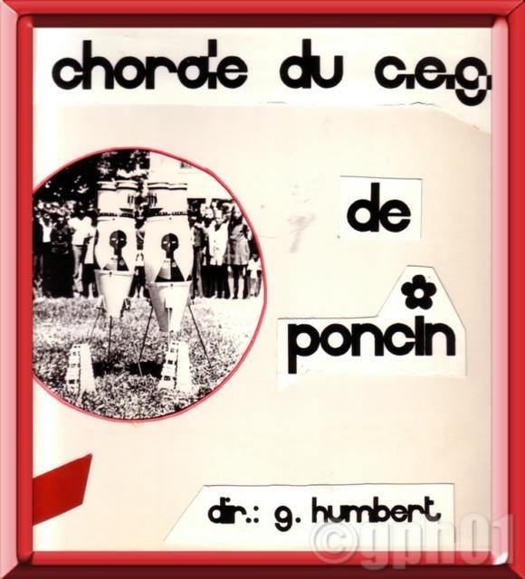 Professeur de Sciences aux collèges de NANTUA puis de PONCIN(01), je crée une chorale de 100 élèves (à PONCIN)avec laquelle un disque 33 tours est enregistré en 1972.Je rassure tous les lecteurs en indiquant que mes élèves ont obtenu des notes brillantes aux épreuves du B.E.P.C. de Sciences Naturelles (SVT aujourd'hui) et de Physique-Chimie......