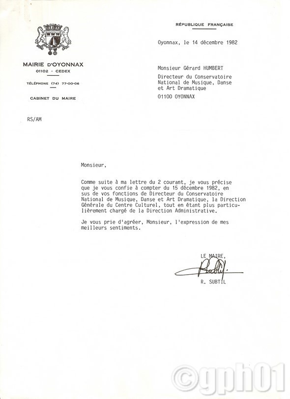 14 déc.1982:le Maire me confie officiellement la charge de la direction générale du centre culturel.