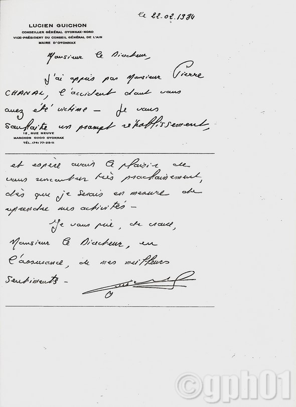 22 Février 1984:carton envoyé par le Maire lors de mon hospitalisation (40 jours)après mon accident à skis(fracture du bassin)-(voir commentaire du document précédent)