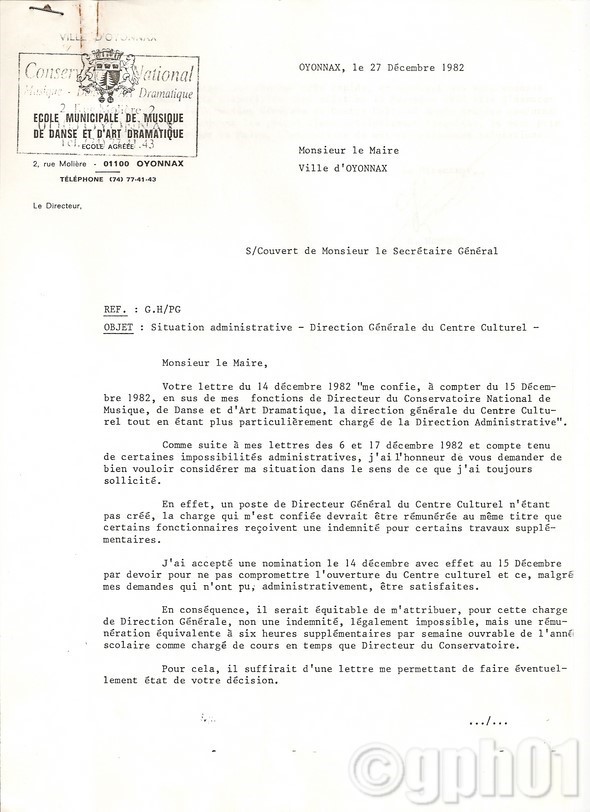 27 déc.1982:ma nomination à la direction générale s'est faite rapidement sans rémunération prévue ni discutée car le temps presse....