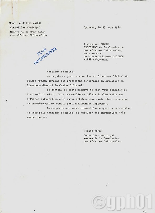 27 juin 1984:la réaction d'un élu de l'opposition m'est transmise pour information mais il n'y aura aucune suite.