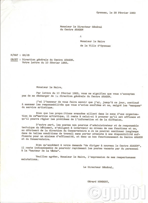 28 février 1983:j'accepte de reprendre ma démission.... certaines insuffisances ayant été levées....