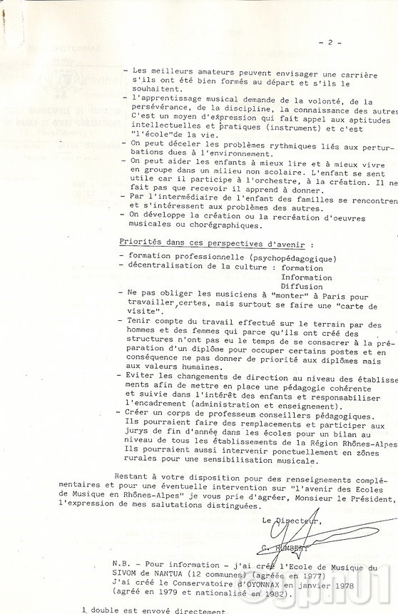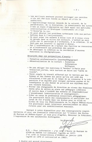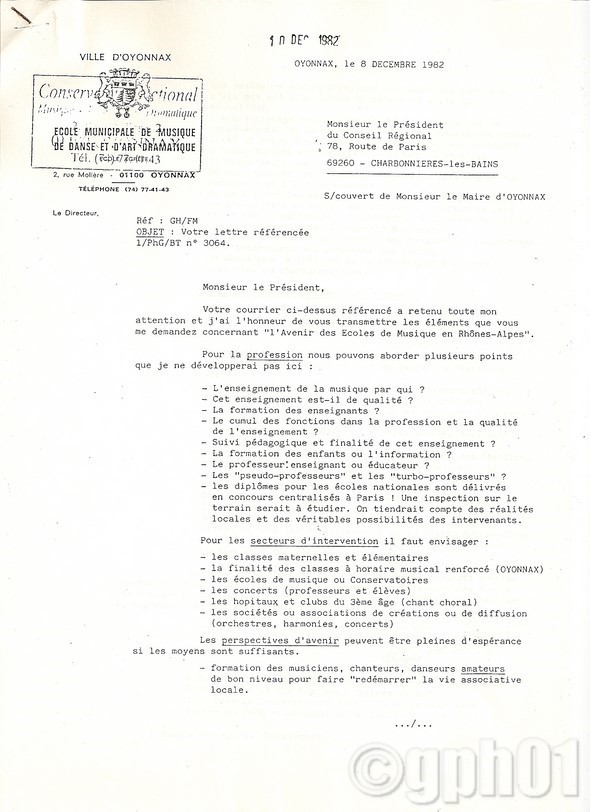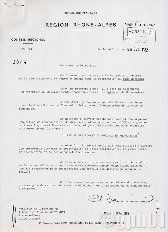REGION RHÖNE-ALPES et CONSERVATOIRE NATIONAL d' OYONNAX Dec.1982.
