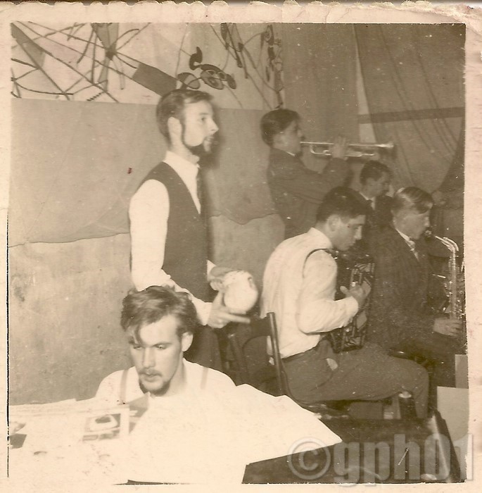 Gérard Broyer(accordéon),Gérard Humbert(saxophone),Millot(piano),Troncy(Batterie),Grossiord(trompette),Foncio(percussion)/Bal des Etudiants à la Jeunesse Laïque